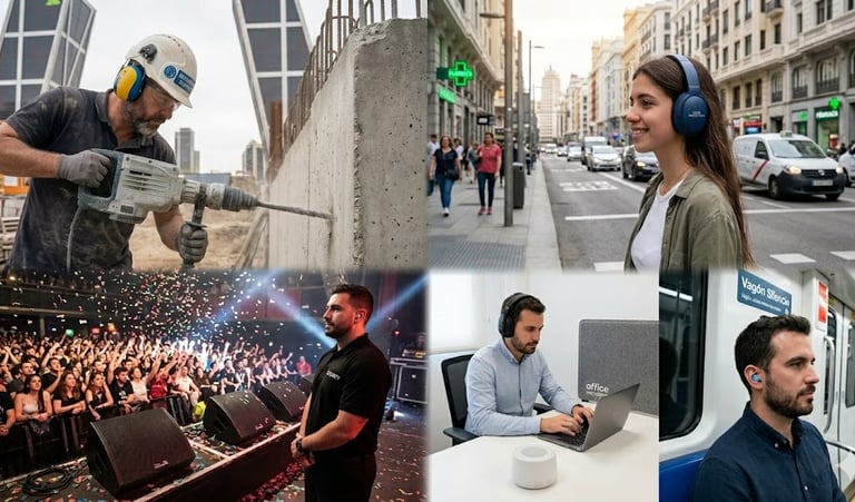Utilizar protección auditiva en entornos ruidosos (conciertos, obras, fábricas).